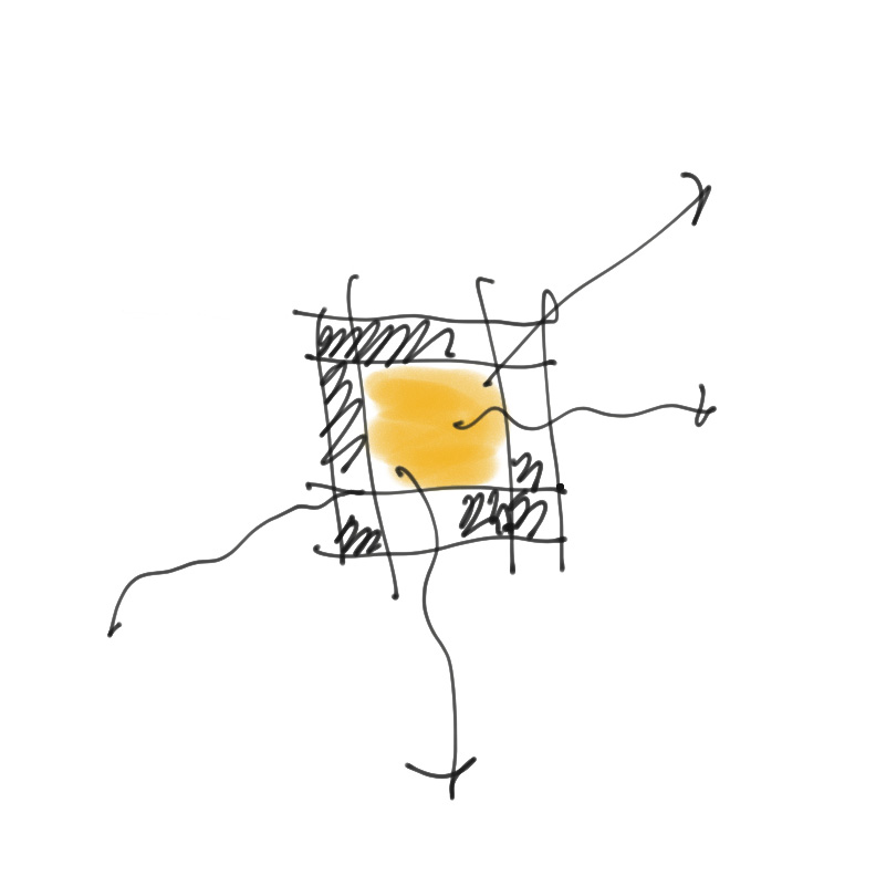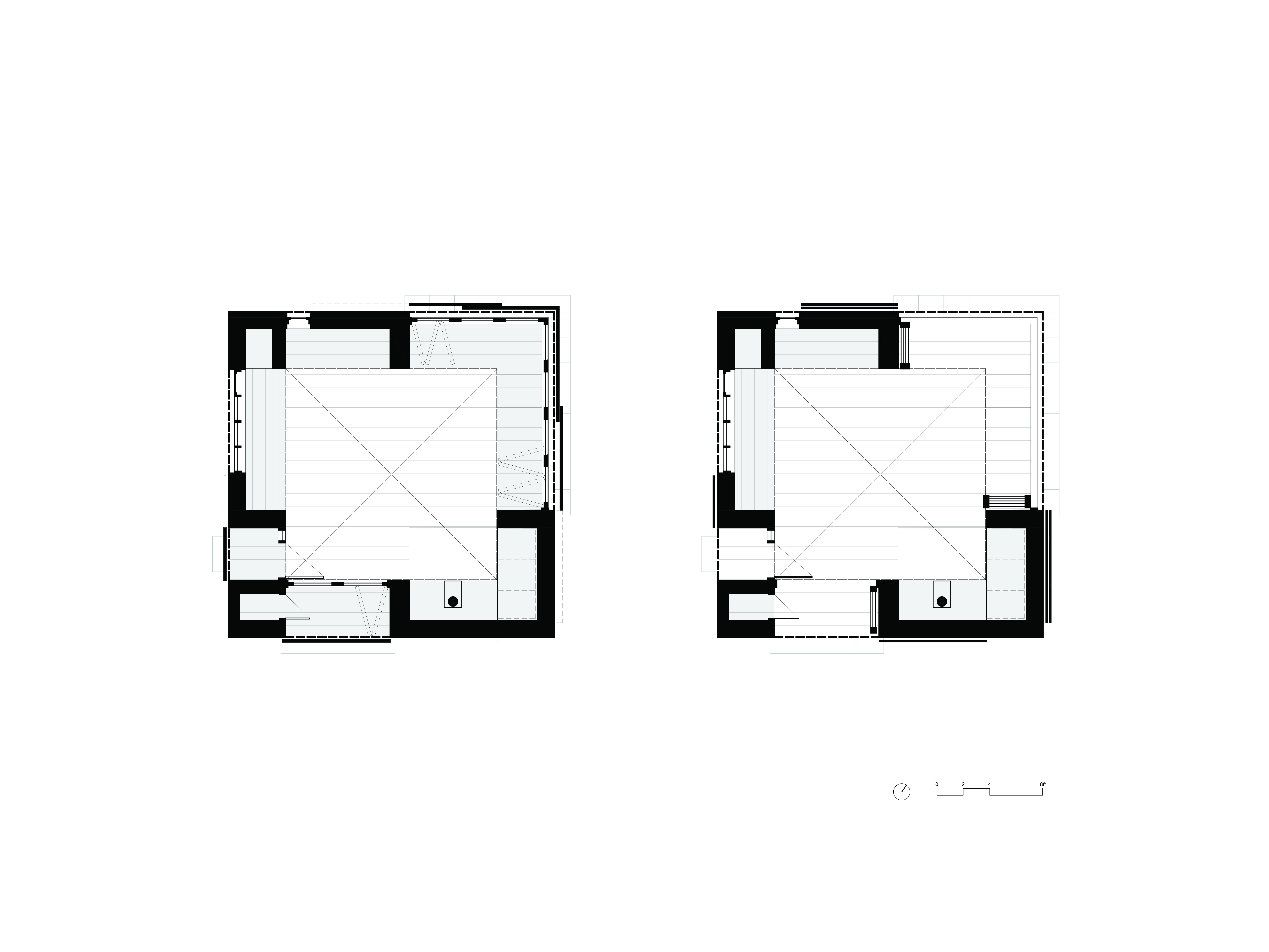Glazed wood doors provide an additional layer of enclosure. When opened, the north corner of the cottage disappears completely, without the use of steel structure. What originally appears to be a pure, mute form carved from a single block, transforms into an instrument for viewing the landscape. Natural light and air pass through the openings in the walls integrating its surroundings with the interior. Two vaulted skylights extend the interior volume vertically - creating a nested central living space. Inspired by the Orinda House by Charles Moore (1962), the parti is a ‘house within a house.’