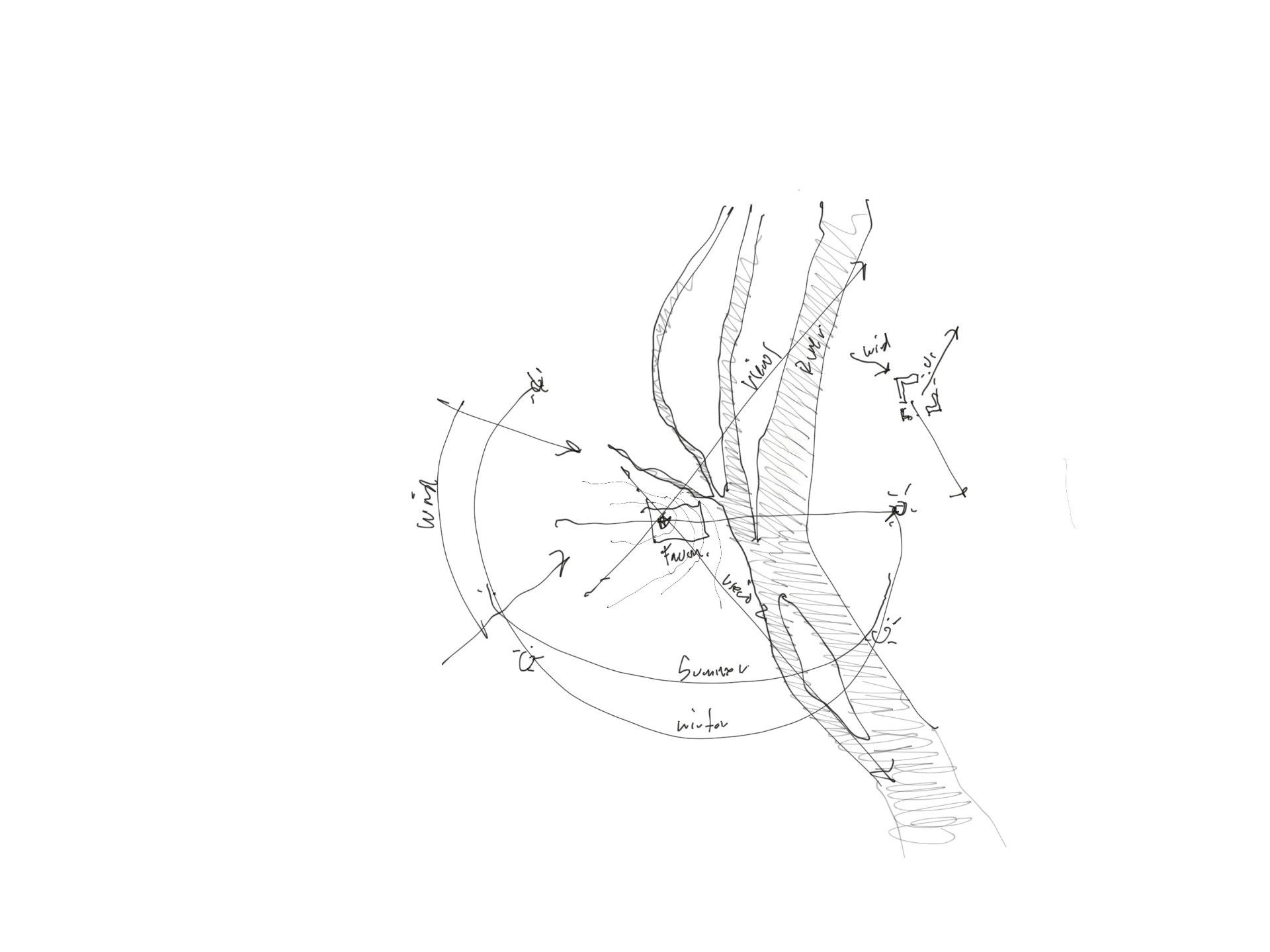 The Hilltop Cottage is a pavilion overlooking a river valley below. Memorializing the place where the owners were engaged, the cottage provides a place of prospect and refuge for seasonal dwelling.
